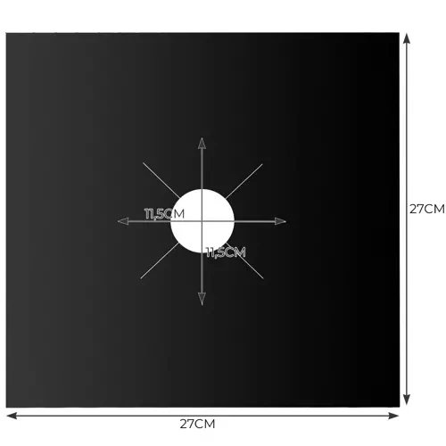 SPECIFIKACE - Černá barva; materiál: teflon; průměr otvoru: 4,5 cm - 11,5 cm; rozměry: 27 x 27 x 0,2 cm; hmotnost: 90 g; hmotnost v balení: 100g.