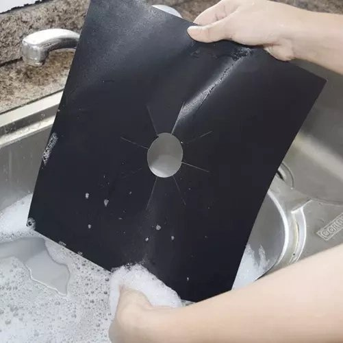 TEFLONOVÝ PLÁŠŤ - tepelná odolnost (-200 až + 260 °C, krátkodobě i do 300 °C) činí rohož ohnivzdornou. Velkou výhodou teflonu je nepřilnavý povlak, díky kterému můžeme snadno udržovat náš sporák čistý .