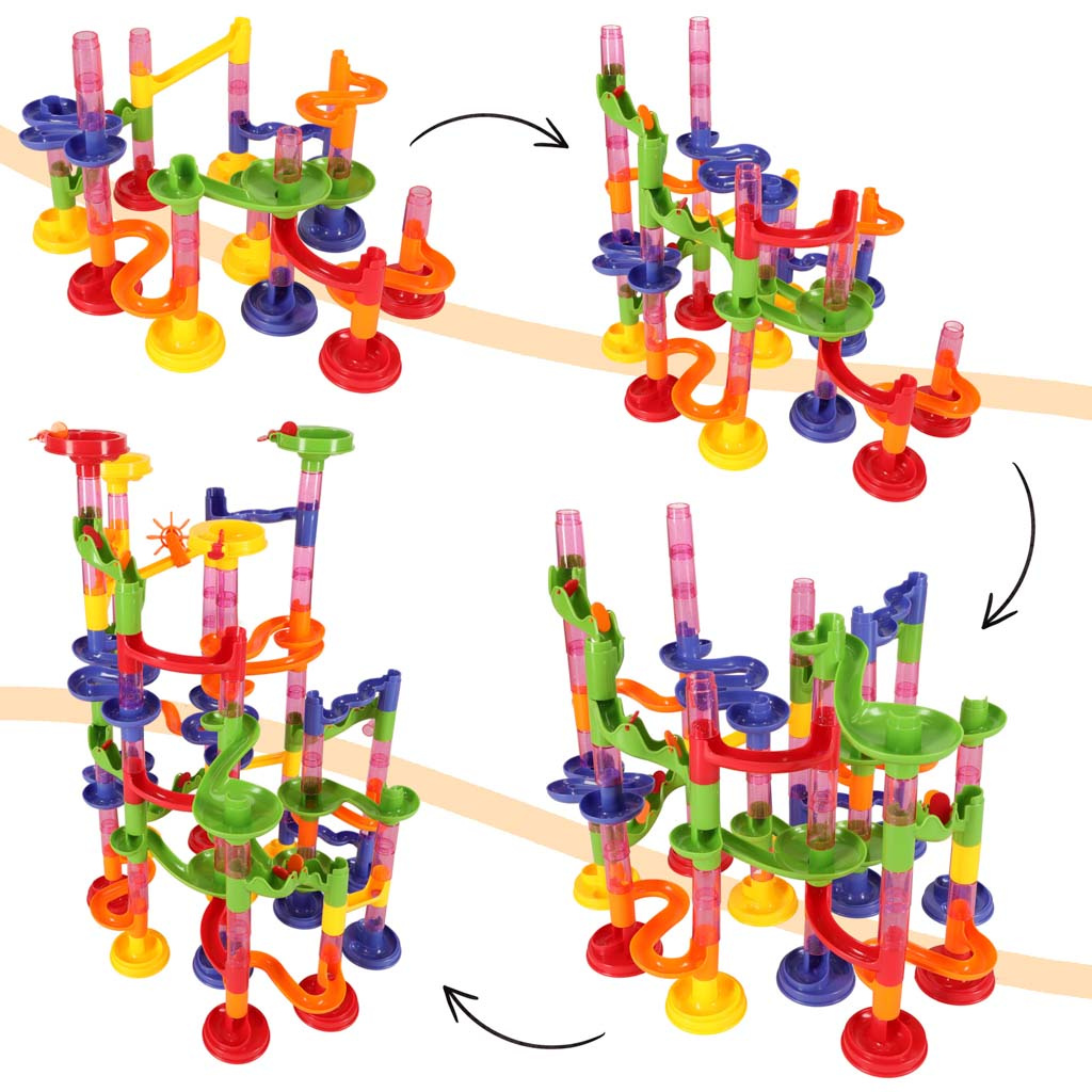 Užij si spoustu legrace s kuličkovou dráhou. Sestav ji dle návodu nebo klidně použij vlastní fantazii a vytvoř kuličce vlastní spletitou cestu ze 219 dílů.