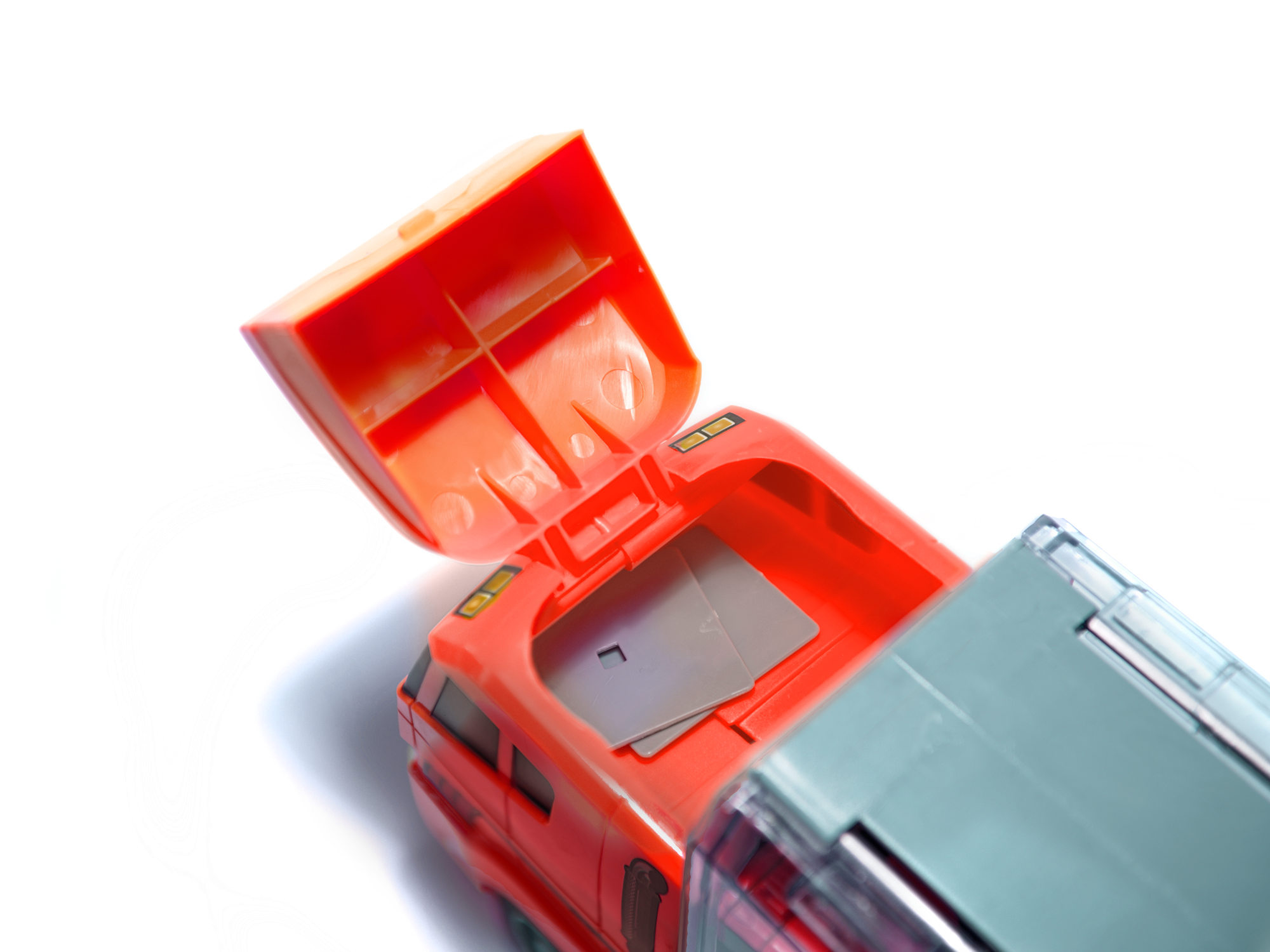 Transportér se otevírá ze dvou stran a na každé straně je místo pro šest vozů. Velké průhledné dveře se zavírají malým zámkem. Tím je zajištěno, že vozidla během jízdy nevypadnou z vozu. Transportér pojme až 14 aut! do otevírací střechy se vejdou další dva vozy.