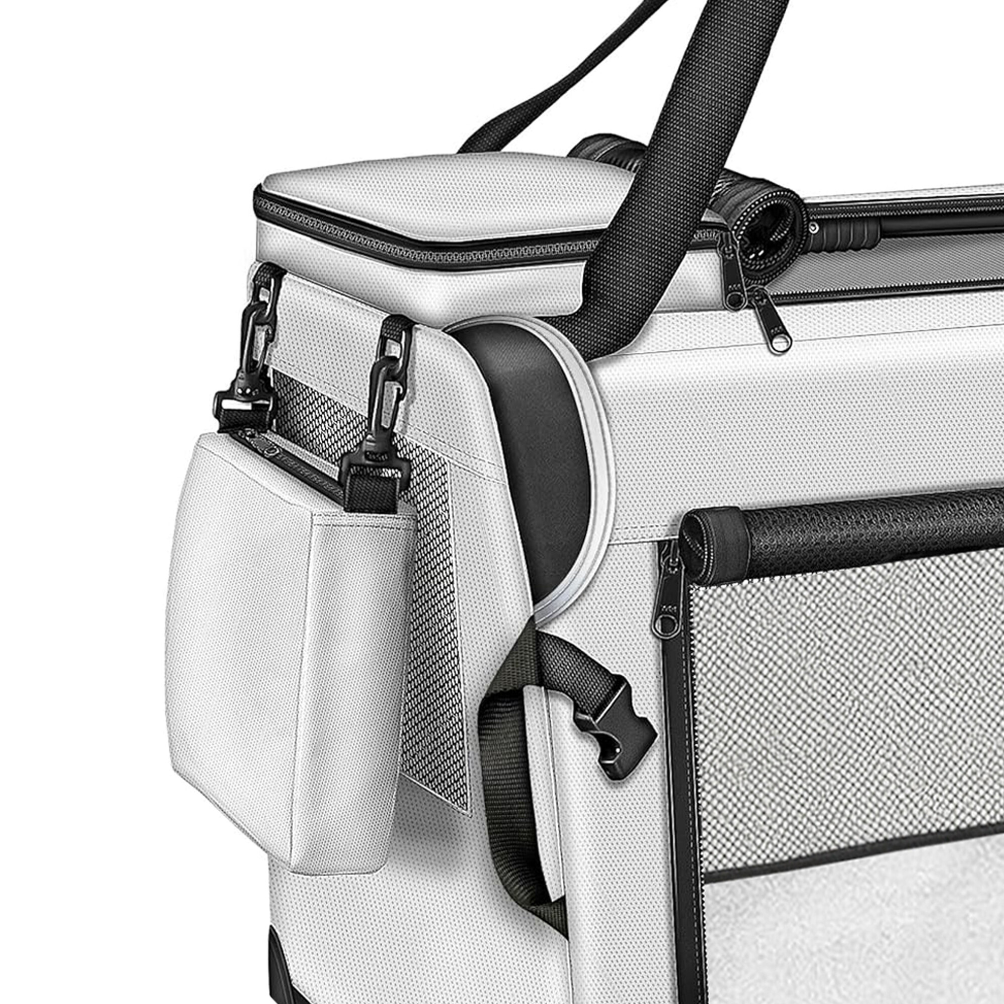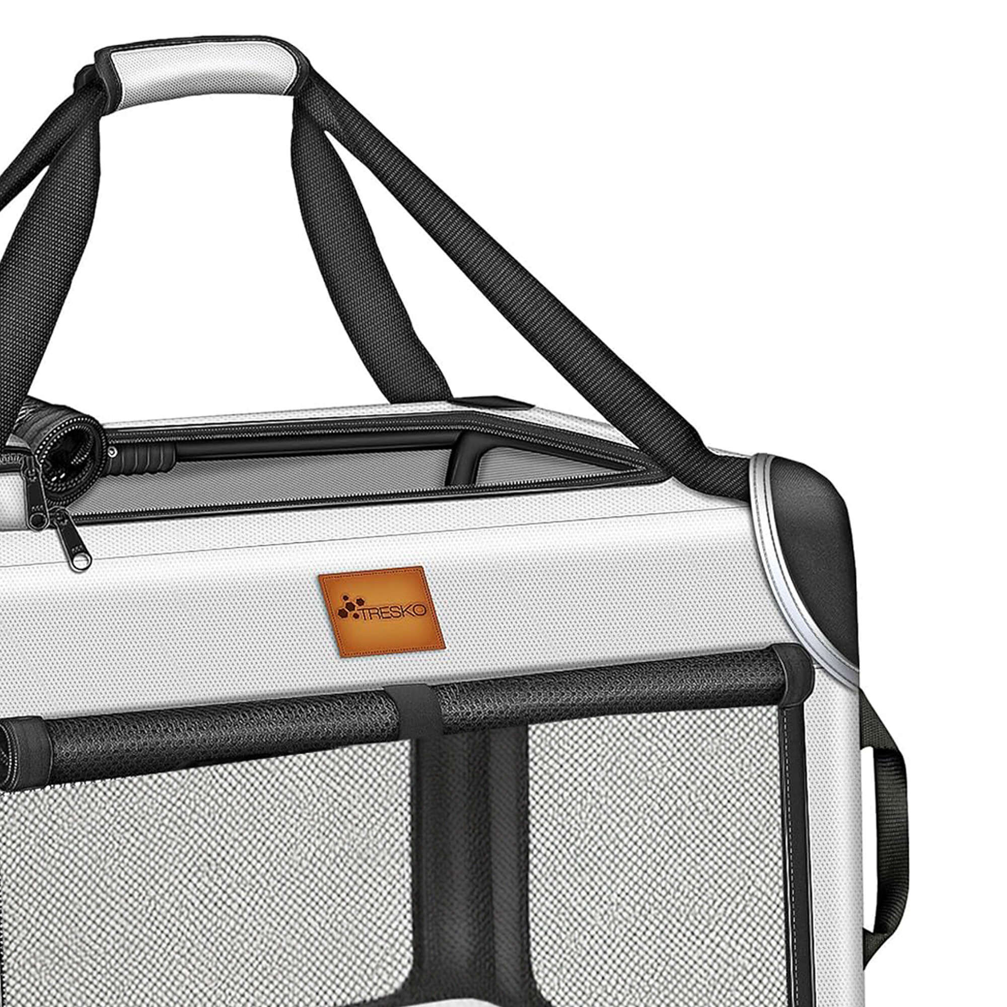 Dvě prostorné kapsy jsou ideální pro uskladnění pamlsků a hraček během výletů k veterináři nebo na dovolenou. Díky skládací ocelové konstrukci lze přepravku rychle složit a rozložit, což usnadňuje její uskladnění a šetří místo. Přepravka je vyrobena z odolného materiálu 600D Oxford, který je snadno udržovatelný.