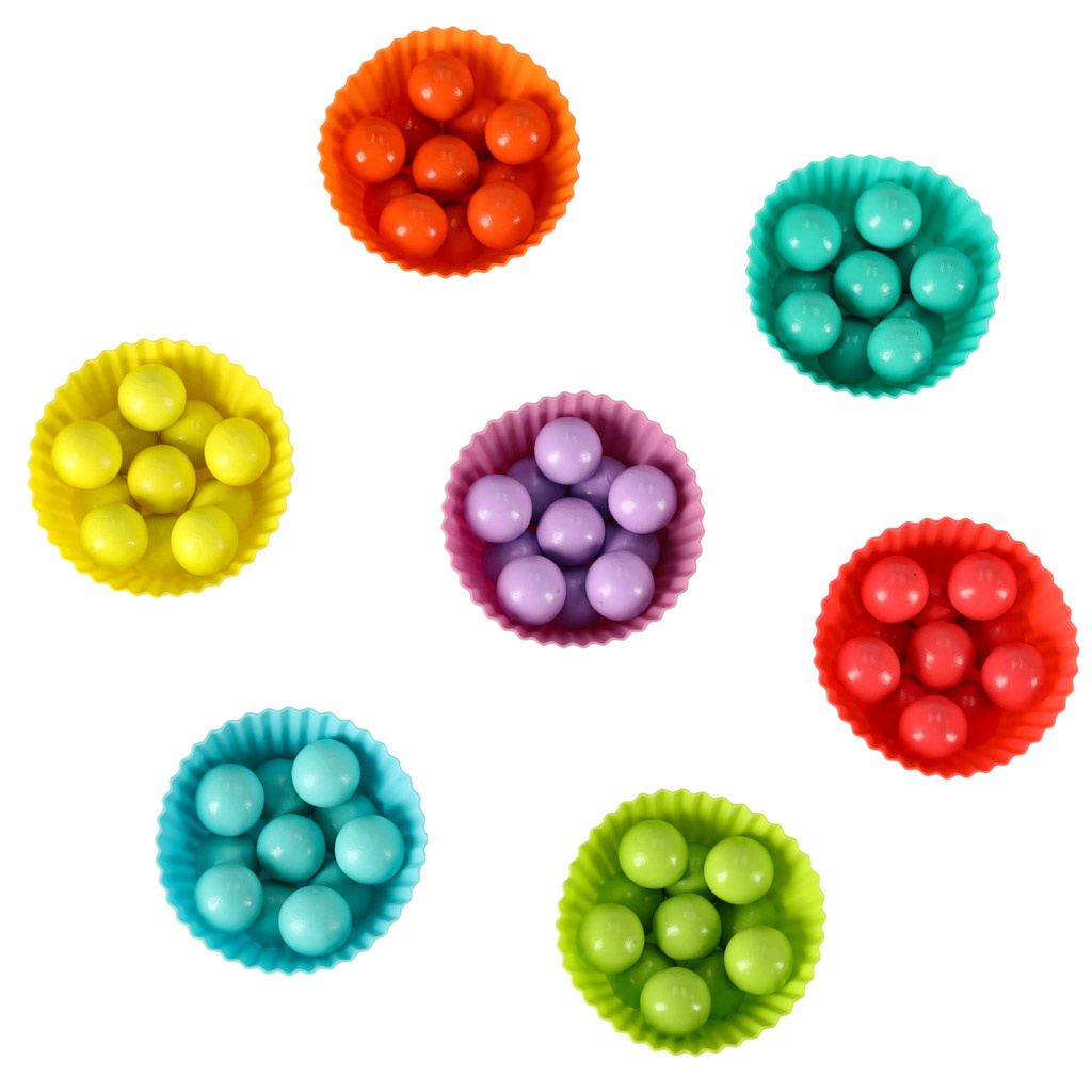 - Součástí balení jsou navíc silikonové košíčky, které pomáhají třídit kuličky podle barev.