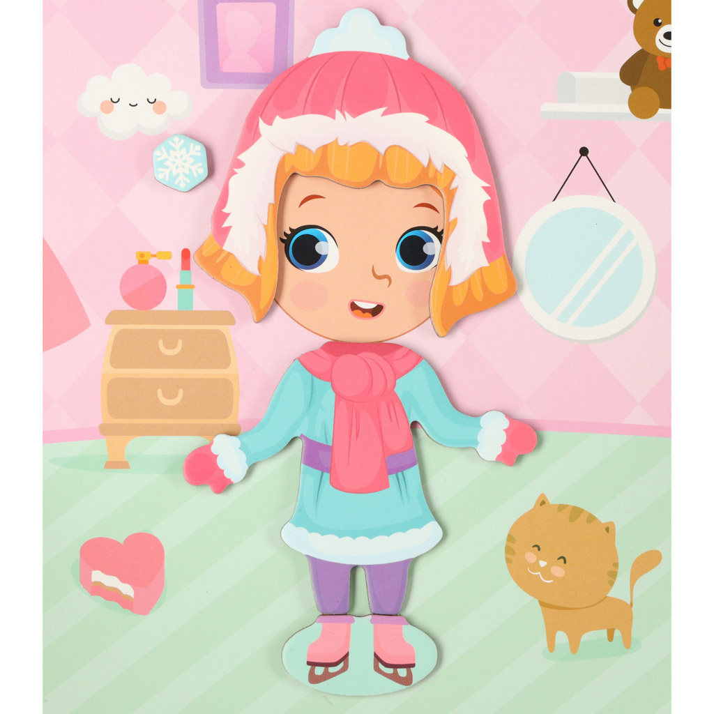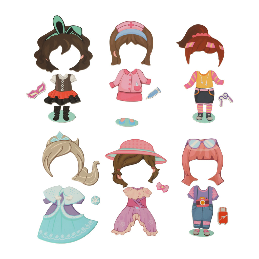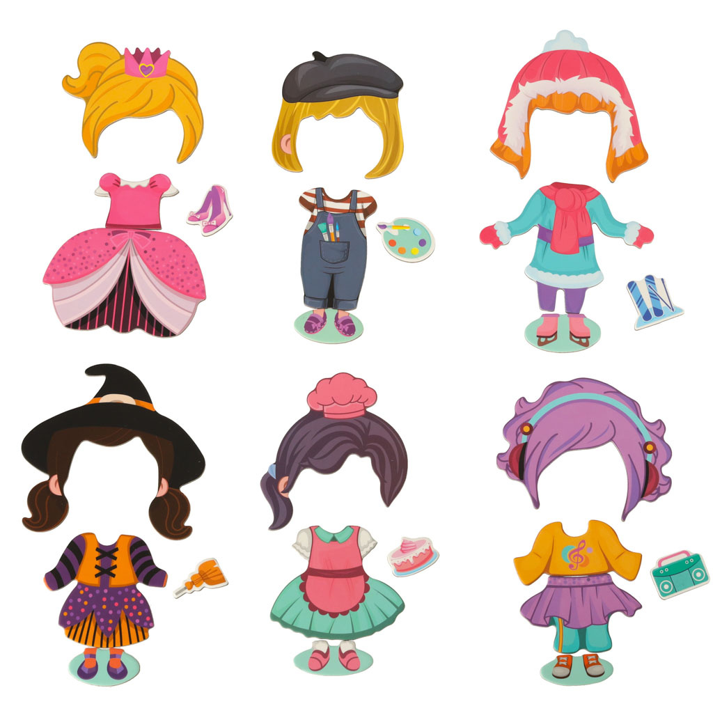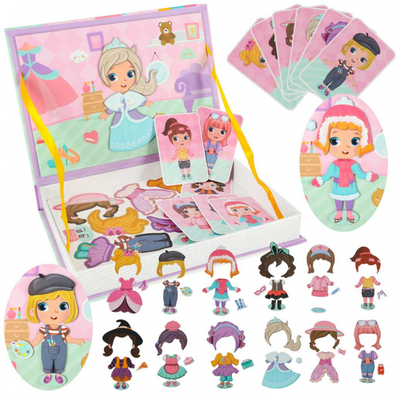 Skvělá hádanka - oblékni si panenku. Upoutá pozornost každého batolete. Hra zahrnuje vytváření různých scén. Vytváření obrázků podporuje kreativitu a představivost dítěte. Obsahuje: magnetickou tabuli, 6 karet, 51 hádanek. Rozměry. dívky: 12 cm.Celý popis