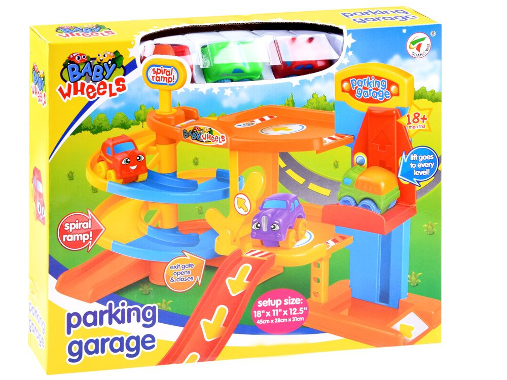 Víceúrovňová garáž zabaví každé dítě na dlouhé hodiny. Hračka je celá vyrobena z plastu v atraktivních barvách. Množství tras, výtah, parkoviště a výjezdy umožní jízdu třemi barevnými vozy. Tvary autíček a kolejí jsou přizpůsobeny malým dětským ručičkám, takže tato hračka je ideální pro každé batole.