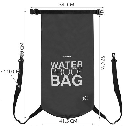 Taška je vyrobena z odolného materiálu, který je nejen voděodolný, ale také účinně chrání předměty uvnitř proti poškrábání a znečištění. jako je brod, písek a sůl . Černá barva a hladký, kluzký povrch neabsorbují vlhkost ani nečistoty, díky čemuž je perfektní i při extrémním, intenzivním používání a navíc zaručuje snadné čištění. Výrobek je pevný a lze jej použít mnohokrát po dlouhou dobu . 30litrový pytel umožňuje umístit do něj mnoho užitečných a cenných předmětů, jako je telefon, peněženka, oblečení, boty, knihy, mapy, fotoaparát, elektronická zařízení, profesionální přístrojové vybavení a také předměty velkých rozměrů, v závislosti na na individuální potřeby.