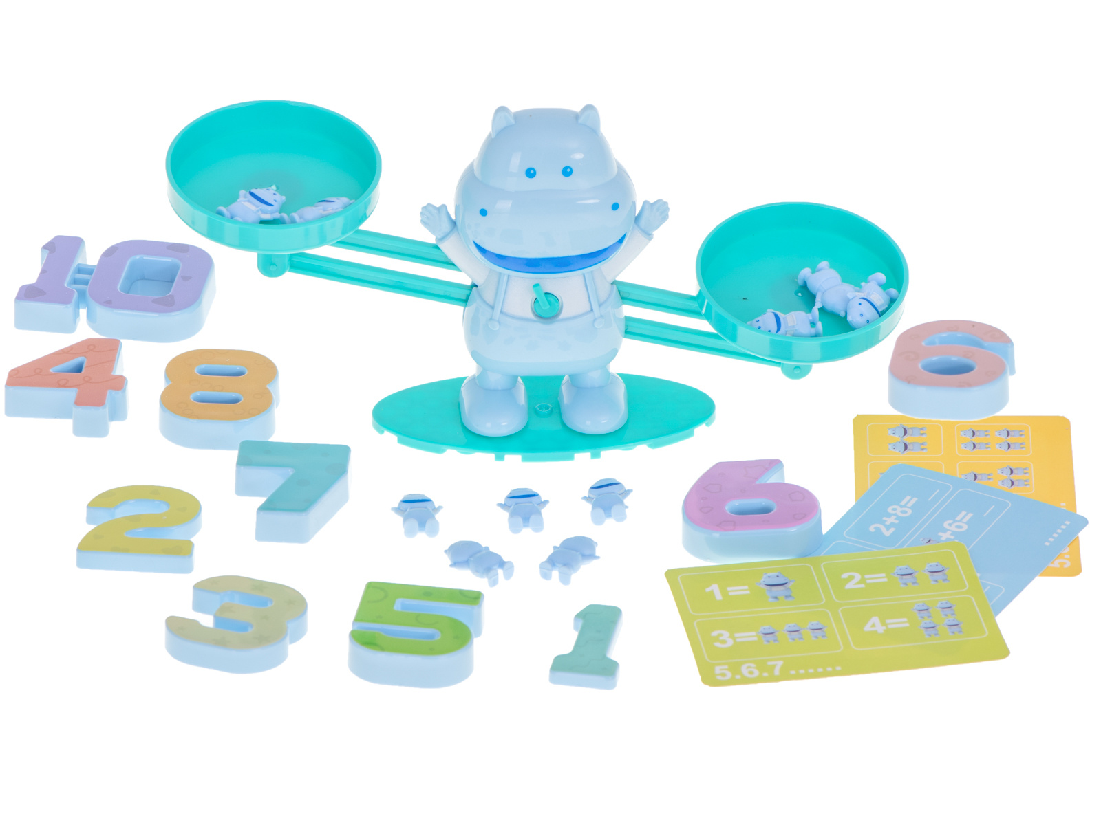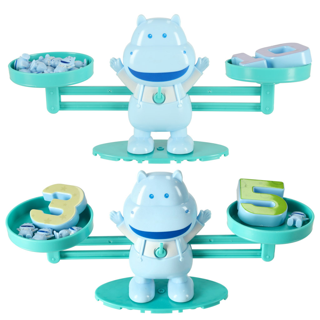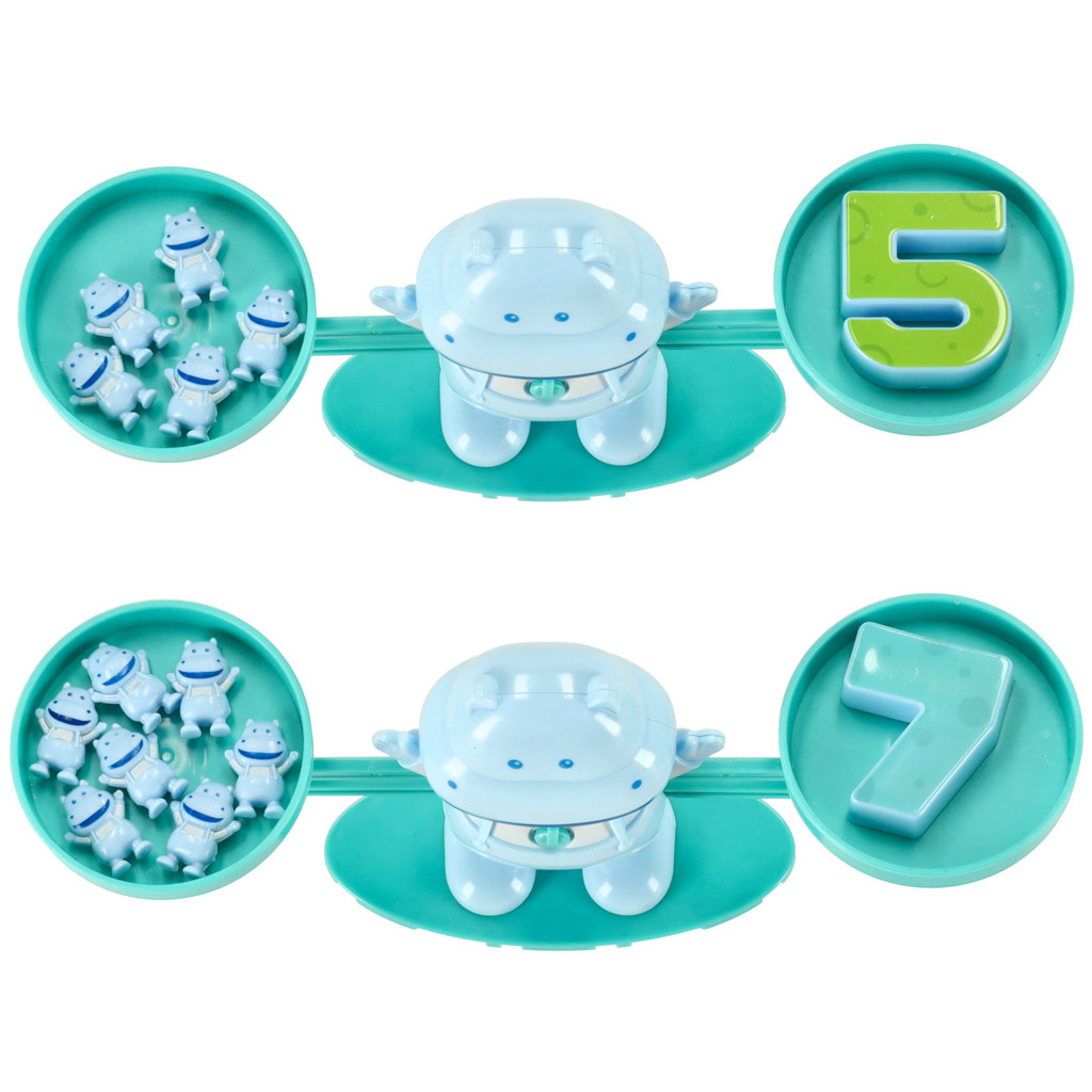 Jak naučit počty zábavně a snadno? Tento hroch je ideální volba! Jednoduše dáte na jednu misku váhy číslo a na druhou příslušný počet hrošíků.