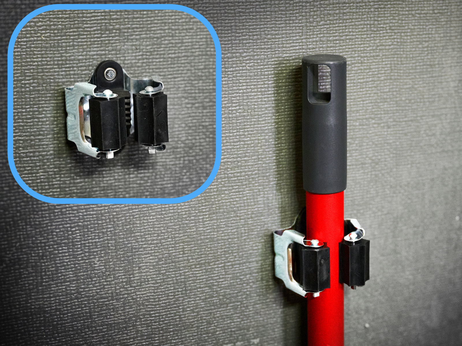 Univerzální nástěnný držák jistě najde uplatnění v každé domácnosti, dílně nebo kanceláři. Díky němu budete mít pod kontrolou neustále se převracející mopy nebo zametací kartáče. Upevnění na stěnu pomocí šroubů zaručuje dlouhou životnost.