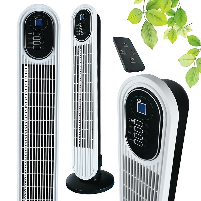 Sloupový ventilátor s moderním designem. Síla foukání zajišťuje příjemné chlazení. Solidní základna zabraňuje pádu a oscilace umožňuje rovnoměrné chlazení celé místnosti. Na rozdíl od standardních ventilátorů, které foukají vzduch pouze ve výšce lopatek, sloupové ventilátory foukají vzduch po celé své výšce. Specifikace: výkon: 45W dálkové ovládání napájení: 240V 60Hz časovač: 0,5-9h rozměry: 22x22x79cm délka. napájecího kabelu: cca. 100 cm Rozměry balení: 15x15x82 cm Množství ks. na paletě: 91