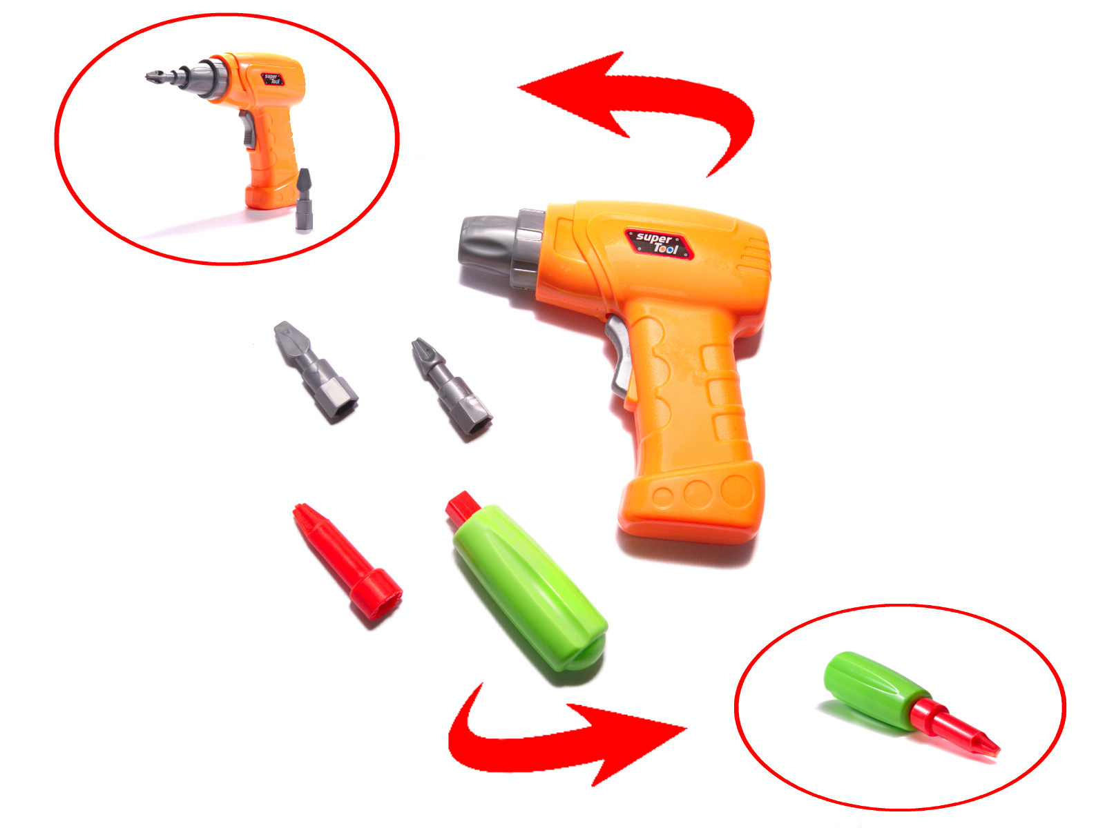 Po vložení baterií a spuštění se šroubovák otáčí jako skutečné zařízení.