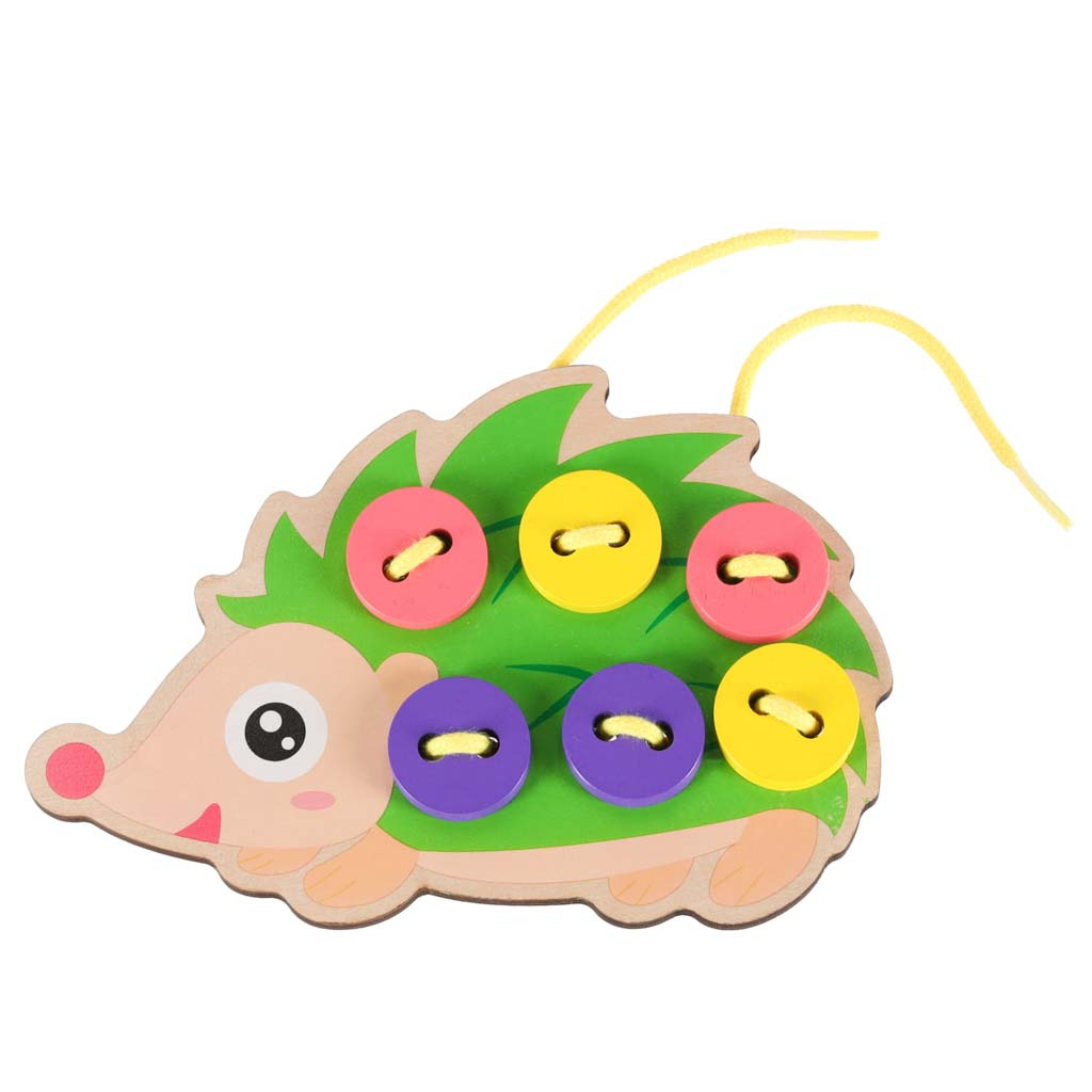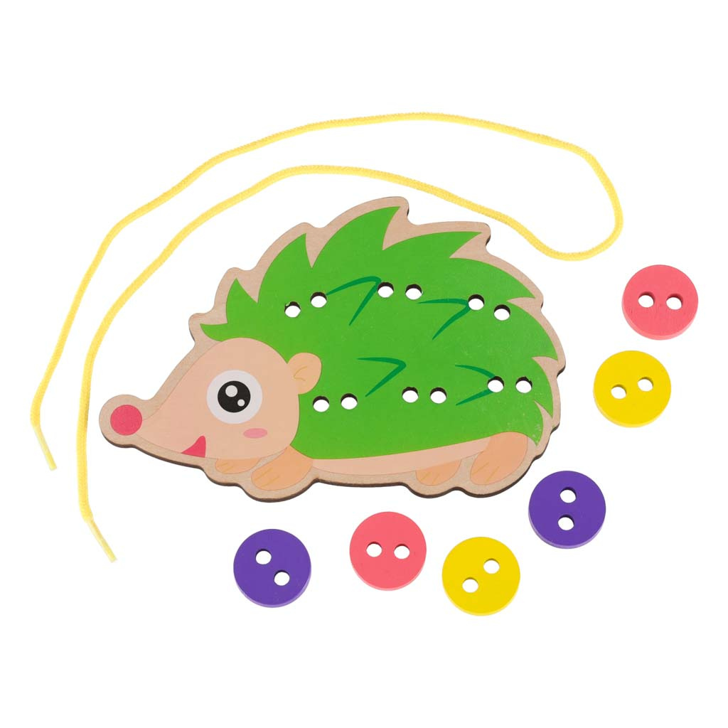 Rozkošný ježek ztratil knoflíky. Pomozte je najít a pevně je připevněte k jehlám, aby se už neztratily. Hra spočívá v proplétání provázku otvory tak, aby se všechny knoflíky připevnily na jehly ježka.